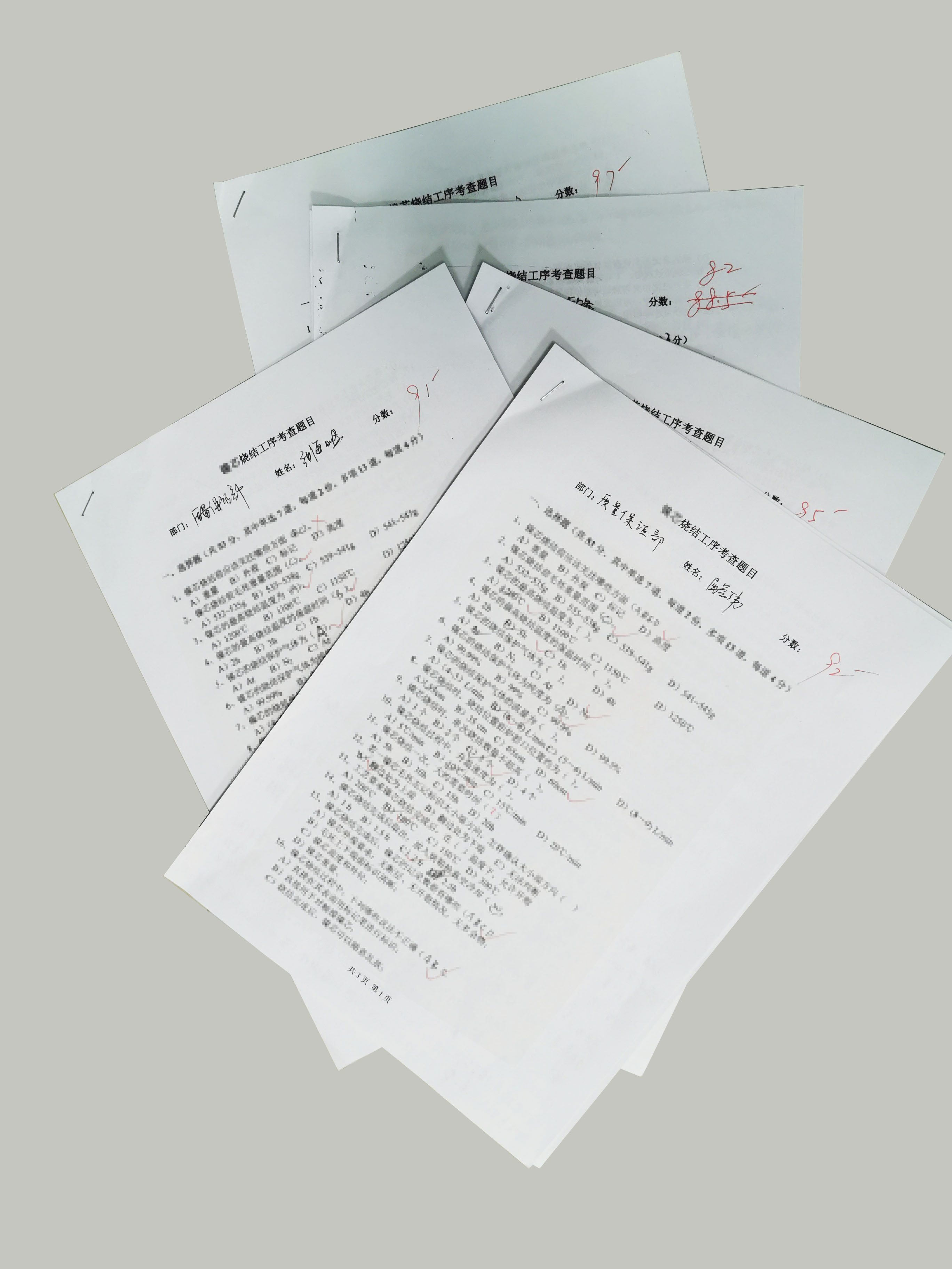為了提升過(guò)程質(zhì)量,促使過(guò)程控制人員及操作人員熟知并掌握零件生產(chǎn)過(guò)程的關(guān)鍵點(diǎn),8月5日,公司組織檢驗(yàn)人員、操作人員進(jìn)行了燒結(jié)工序的質(zhì)量控制點(diǎn)考試。考點(diǎn)涉及生產(chǎn)過(guò)程的人、機(jī)、料、法、測(cè)等六個(gè)方面,使得從事燒結(jié)工序的操作人員與質(zhì)量控制人員對(duì)本工序的關(guān)鍵點(diǎn)及注意事項(xiàng)進(jìn)行了一次全面的復(fù)盤,為后期開(kāi)展的燒結(jié)工序取得良好的過(guò)程控制奠定基礎(chǔ)。