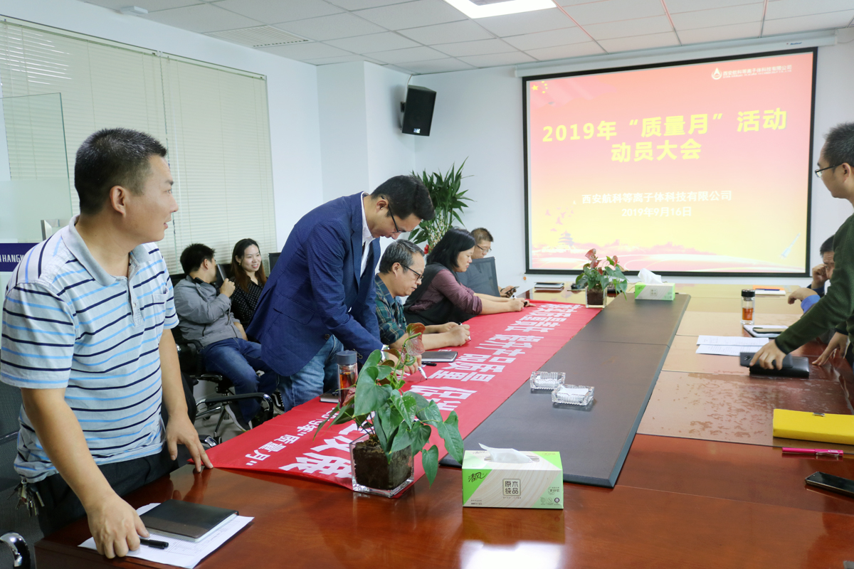 最后全員逐一在 “質量月”活動“落實質量責任 提升產(chǎn)品質量 促進企業(yè)發(fā)展”的橫幅上鄭重簽字。決心立足崗位,提升質量意識,恪守工藝標準,以實際行動踐行“以先進科技和裝備做國防的守護者”的承諾。