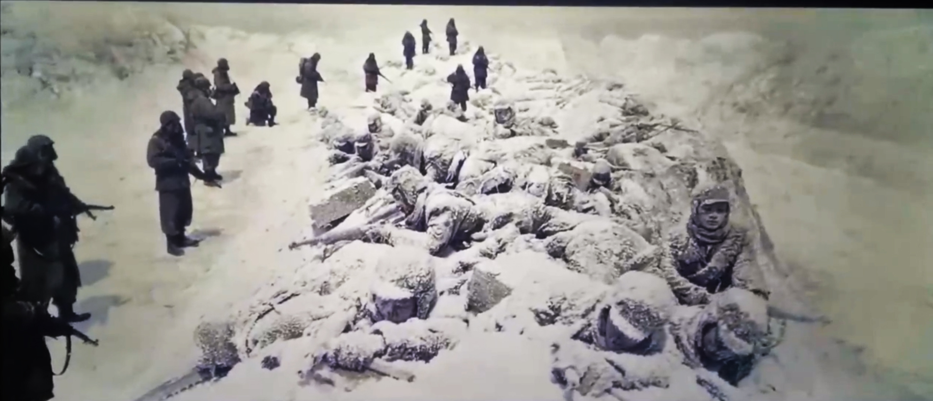 面對(duì)武器和其他裝備優(yōu)良的美國(guó)軍隊(duì),中國(guó)人民志愿軍戰(zhàn)士體現(xiàn)了服從命令視死如歸、凍成冰雕也不退縮的革命精神。面對(duì)“冰雕連”的烈士們,美國(guó)人由衷的向他們行了個(gè)軍禮。