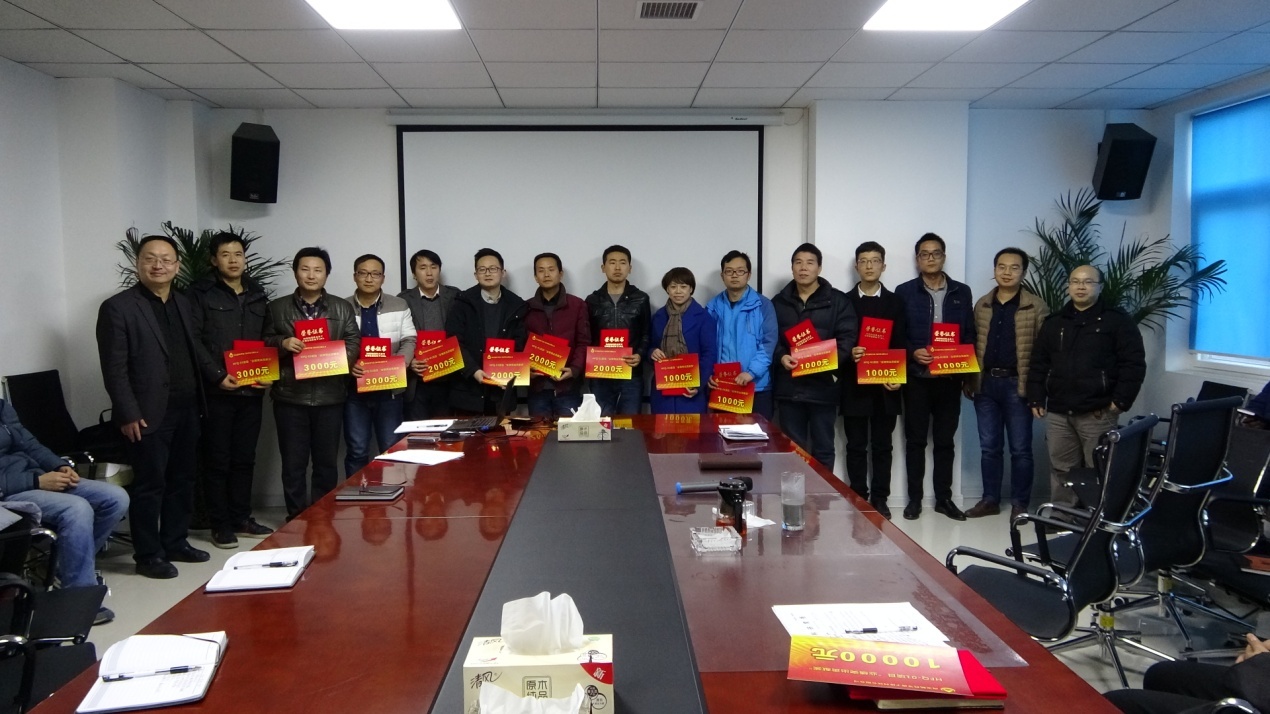 緊接著公司總經(jīng)理靳有林、副總經(jīng)理陳紅明、總工程師馬俊分別為項目組其他受到表彰的成員頒發(fā)榮譽證書及獎金,并合影留念。