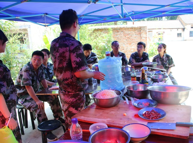 到了中午,我們下廚房自己做飯,有的洗菜,有的切菜,張工、趙部長毫不猶豫的擔(dān)任了各自團(tuán)隊(duì)大廚的角色,大家即使已經(jīng)筋疲力盡,但還是沉浸在了烹飪的歡樂當(dāng)中。